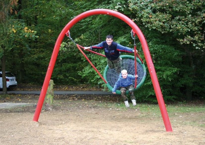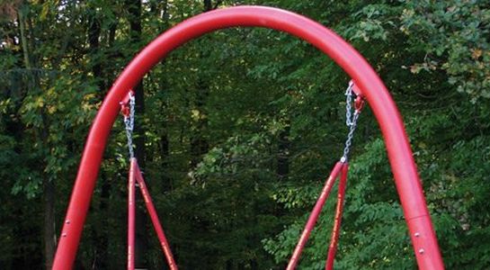 - 1 ocelový oblouk houpačky (Ø 140 mm), žárově pozinkovaný, speciální barva (červená) k natření součástí dodávky